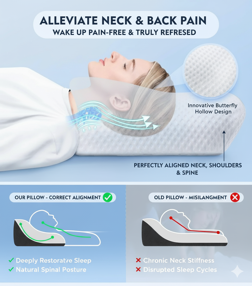 Yes—its cervical contour keeps your head and neck aligned to reduce pressure points while you sleep. Many feel relief in 1–3 nights, but give it up to 1–2 weeks to fully adjust. (Not a medical device.)